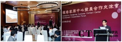 CTI論壇(ctiforum)5月12日消息(記者 潘婷婷):為促進(jìn)穗港兩地企業(yè)交流與合作,共同提升兩地客戶服務(wù)中心的服務(wù)品質(zhì),2010年4月14日(星期三)11:00-13:30,由廣州市對(duì)外貿(mào)易經(jīng)濟(jì)合作局、廣州市科技和信息化主辦,廣州軟件合作中心承辦的“穗港客服中心發(fā)展合作交流會(huì)”在香港凱悅酒店順利舉行。