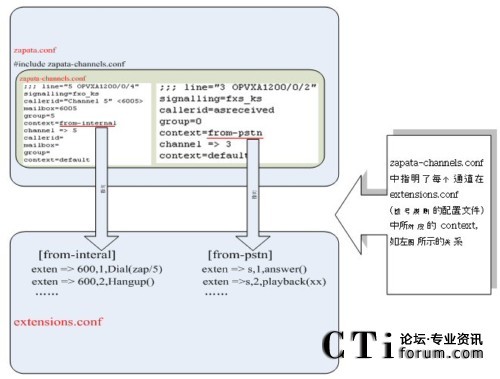 zapata.conf , zapata-channels.conf, extensions.conf 三者的關(guān)系圖: