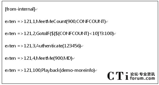 3.下面我們需要在meetme.conf這個(gè)文件中添加會(huì)議房間號(hào)