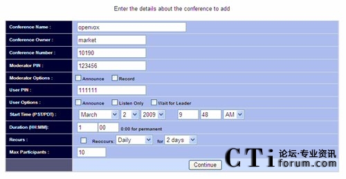 設(shè)定會(huì)議基本信息后,點(diǎn)擊下面的Add Conference button,頁(yè)面如下: