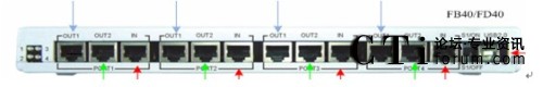 OpenVox的FB40\FD40單機(jī)面板接口包括BRI\PRI接入口(IN)、用于連接主服務(wù)器E1接入口(OUT2)和用于連接備用服務(wù)器E1接入口(OUT),USB口用于連接主服務(wù)器,開關(guān)用于切換電路狀態(tài),(可以手動(dòng)或者通過命令行進(jìn)行切換),如圖所示: