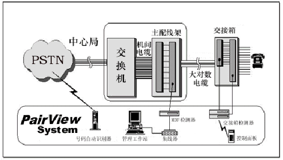 8. 可為電信公司帶來良好的收益和長遠(yuǎn)的經(jīng)濟(jì)利益 本地環(huán)路測試系統(tǒng)(PairView)的構(gòu)成如下: