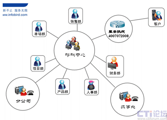 訊鳥(niǎo)軟件現(xiàn)有員工150人,總部位于北京,在上海設(shè)有一個(gè)分公司,在廣州、深圳分別設(shè)有一個(gè)辦事處。通過(guò)將呼叫中心與企業(yè)運(yùn)營(yíng)管理的融合,大大提高了員工的工作效率,降低了運(yùn)營(yíng)管理成本。訊鳥(niǎo)軟件副總裁姜冬良先生告訴我們,自2007年6月在企業(yè)運(yùn)營(yíng)管理中加入呼叫中心之后,所有員工對(duì)外聯(lián)系的名片上只有公司的400號(hào)碼和員工分機(jī),不再顯示員工的手機(jī),這樣有效的避免了因?yàn)閱T工流失造成的客戶服務(wù)無(wú)法及時(shí)響應(yīng)的現(xiàn)象,同時(shí),所有員工的工作狀態(tài)可以通過(guò)報(bào)表系統(tǒng)有效的衡量,尤其是銷售人員和分公司、辦事處人員的工作,管理層可以及時(shí)的檢查、監(jiān)督和糾正。