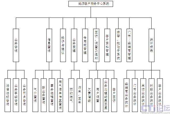 其中,主要功能劃分為:業(yè)務(wù)咨詢、信息查詢、投訴與建議、業(yè)務(wù)受理、專(zhuān)用瓶管理、回訪/調(diào)查/通知、報(bào)警/搶險(xiǎn)、門(mén)市/經(jīng)銷(xiāo)商管理、客戶信息管理以及統(tǒng)計(jì)報(bào)表等功能。