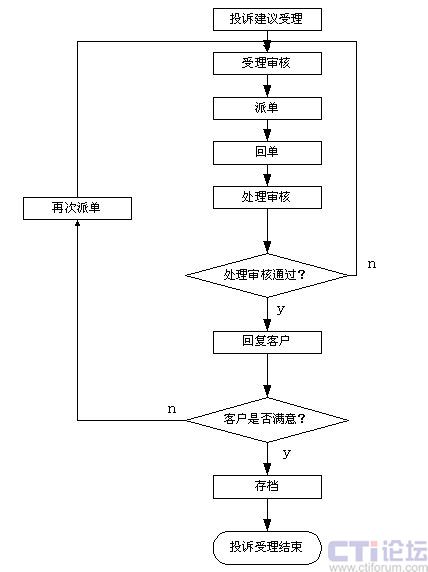 話務(wù)員確認(rèn)投訴和建議后由復(fù)審員再次確認(rèn)分析,然后把用戶的各種意見(jiàn)和合理化建議轉(zhuǎn)相關(guān)部門(mén)處理,對(duì)呼叫中心本身的投訴則轉(zhuǎn)班長(zhǎng)席處理。投訴受理系統(tǒng)可以設(shè)置處理部門(mén)和處理時(shí)限,完成告警輸出和各種統(tǒng)計(jì)分析工作,投訴和建議的處理結(jié)果可以根據(jù)需要采用人工、自動(dòng)、傳真、短信的形式反饋到用戶以提高用戶對(duì)服務(wù)的滿意度。
