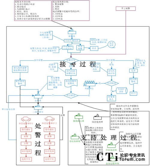 集成指揮調(diào)度系統(tǒng)的功能覆蓋了指揮調(diào)度的全部業(yè)務(wù)鏈,包括與110聯(lián)網(wǎng)處理警情、系統(tǒng)輔助下進行處警指揮、調(diào)度警力和救援部門、交通疏導指揮、交通警保衛(wèi)、自動記錄跟蹤處理情況、總結(jié)優(yōu)化指揮調(diào)度方案等業(yè)務(wù)工作。
