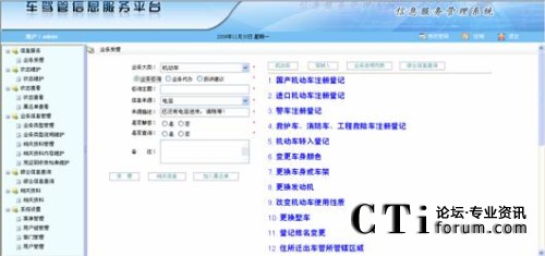 該模塊主要受理三大類業(yè)務(wù):咨詢類業(yè)務(wù)、代辦類業(yè)務(wù)和投訴建議類業(yè)務(wù),以及提供業(yè)務(wù)咨詢和業(yè)務(wù)代辦時的相關(guān)業(yè)務(wù)信息檢索和機(jī)動車、駕駛?cè)司C合信息的查詢驗(yàn)證。