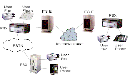 許多公司有多個(gè)辦公地點(diǎn),各地之間有著頻繁的通訊往來(lái),電話和傳真。典型地,通訊涉及到公用交換電話網(wǎng)(PSTN)或PBX間的私人連接路線。Internet電話服務(wù)器(ITS-E)提供了另一選擇;驹硎且惶幱脩魮艽虻碾娫捊(jīng)本地PBX路由到本地ITS-E,本地ITS-E通過(guò)IP網(wǎng)絡(luò)送到目的地ITS-E,目的地ITS-E再將電話送到目的地PBX上,最后送到目的地電話或傳真機(jī)上。