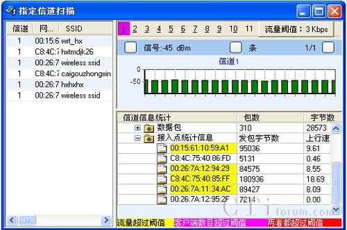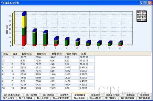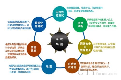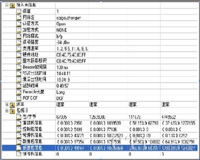 該系統(tǒng)能夠向用戶提供豐富的802.11 a/b/g/n無線參數(shù),包括信號(hào)強(qiáng)度覆蓋參數(shù),同頻干擾及鄰頻干擾參數(shù),管理幀、控制幀、數(shù)據(jù)幀及各種無線幀傳輸速率的統(tǒng)計(jì)參數(shù)等;系統(tǒng)能基于以上各類統(tǒng)計(jì)參數(shù),并通過實(shí)時(shí)進(jìn)行各種數(shù)據(jù)業(yè)務(wù)測(cè)試,獲取網(wǎng)絡(luò)的數(shù)據(jù)業(yè)務(wù)參數(shù)指標(biāo),分析WLAN網(wǎng)絡(luò)質(zhì)量問題。