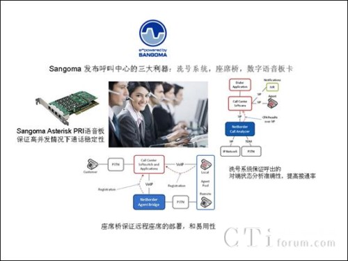 多年的北美通信市場和asterisk開源市場的磨練,和Sangoma產(chǎn)品通過在國際市場的經(jīng)驗(yàn),sangoma 發(fā)布的產(chǎn)品充分得到了呼叫中心國際廠商和asterisk 呼叫中心廠家的認(rèn)可,在洗號(hào)系統(tǒng),橋座席,語音板卡上面保證了呼叫中心的穩(wěn)定性,提高了呼叫中心的接通率,節(jié)省了座席遠(yuǎn)程管理的成本。同樣,Sangoma 也非常希望分享Sangoma在國外市場的成果,把卓越的產(chǎn)品帶給呼叫中心的廠家和客戶。