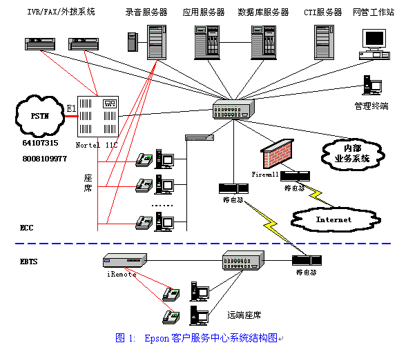 愛(ài)普生(中國(guó))的客服系統(tǒng)采用數(shù)據(jù)集中與分散相結(jié)合、座席集中受理的方式進(jìn)行建設(shè)。其中,所有設(shè)備均配置在北京,所有座席均在北京受理客戶服務(wù)請(qǐng)求,