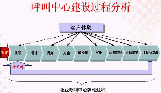 對(duì)企業(yè)新建或改擴(kuò)建呼叫中心的過程分析后,大致可歸納為如下圖所示: