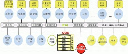 建立在ODS基礎(chǔ)上的ODS+EAI框架為整個(gè)公共安全應(yīng)急指揮系統(tǒng)提供基礎(chǔ)架構(gòu),通過(guò)該框架不僅可以交換并緩存數(shù)據(jù)信息,同時(shí)可以交換和記錄調(diào)度命令,通過(guò)數(shù)據(jù)采集構(gòu)建信息數(shù)據(jù)基礎(chǔ),記錄并歸檔事件處理過(guò)程,維護(hù)和利用預(yù)案處理過(guò)程。同時(shí)該框架也為我們建議的本地或遠(yuǎn)程O(píng)EM系統(tǒng)、甚至是移動(dòng)的OEM系統(tǒng)提供有力的技術(shù)和數(shù)據(jù)支撐。
