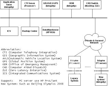 結(jié)合HP公司在全球范圍內(nèi)911應(yīng)急系統(tǒng)和安全領(lǐng)域的建設(shè)經(jīng)驗(yàn)和案例,HP公司針對(duì)國(guó)內(nèi)對(duì)公共安全建設(shè)的需求,提供了公共安全系統(tǒng)的建設(shè)架構(gòu)和解決方案