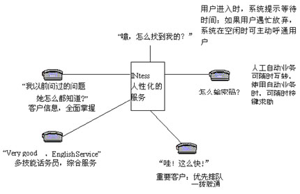 基于CTI(電信和計算機集成)技術和call center(呼叫中心)技術的INtess客戶服務平臺,積累網(wǎng)上600多套設備業(yè)務開發(fā)和運行實踐的經(jīng)驗,運用專業(yè)化的設計,全面解決電信客戶服務中的難題: