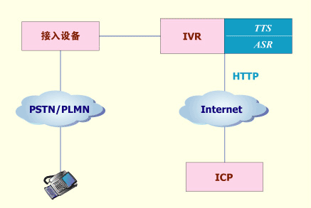使用VXML語(yǔ)言編寫流程腳本或網(wǎng)頁(yè),該腳本或網(wǎng)頁(yè)的內(nèi)容與固網(wǎng)短信終端上的菜單相對(duì)應(yīng),普通用戶可通過語(yǔ)音方式瀏覽該菜單。當(dāng)用戶選擇信息點(diǎn)播后,VoiceIE系統(tǒng)模擬普通固網(wǎng)短信終端向ICP發(fā)送請(qǐng)求,并接收ICP發(fā)來的文字信息,然后通過TTS技術(shù)向用戶播放文字信息。當(dāng)然,固網(wǎng)短信終端也可通過菜單瀏覽方式使用這些采用VXML語(yǔ)言編寫的業(yè)務(wù),采用VXML語(yǔ)言編寫網(wǎng)頁(yè)的工作可由ICP來完成。