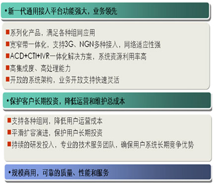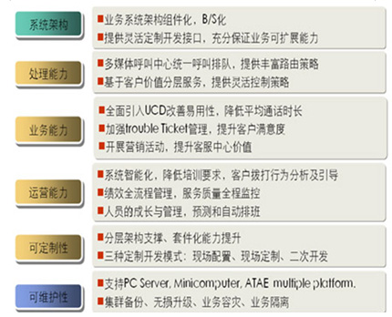 從服務(wù)內(nèi)容來看,聯(lián)絡(luò)中心建立了一個(gè)統(tǒng)一面向客戶的綜合性服務(wù)平臺,實(shí)現(xiàn)涵蓋公司各項(xiàng)主要產(chǎn)品和業(yè)務(wù)的專業(yè)信息咨詢與交易功能,并實(shí)現(xiàn)人工服務(wù)、業(yè)務(wù)咨詢、業(yè)務(wù)處理、投訴處理、建議受理、預(yù)約服務(wù)、客戶回訪等一體化的話務(wù)處理與管理,為客戶提供多樣化、全方位、個(gè)性化的接入方式與服務(wù)內(nèi)容。
