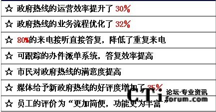 在我們的采訪中,深圳市政府認(rèn)為,建設(shè)法治政府、廉潔政府、效率政府、有限政府、陽光政府和責(zé)任政府,前提是政府必須完成轉(zhuǎn)型。政府行政體制改革的最終目標(biāo)是要達(dá)到行政權(quán)力規(guī)范,服務(wù)型的一個政府。因而,為市民提供專業(yè)權(quán)威和有效的政府熱線服務(wù)成為題中之意。通過深圳市12345政府熱線的成功應(yīng)用,我們可以體會到呼叫中心應(yīng)用于政府及公用事業(yè)部門后,受益的不僅是千百萬公眾,更重要的是加速了在社會急劇變革時代政府職能的現(xiàn)代化轉(zhuǎn)型。
