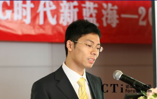 圖:華為軟件UC產(chǎn)品總監(jiān)許國(guó)華做“攜手邁入全業(yè)務(wù)融合時(shí)代,助力企業(yè)騰飛”的主題演講