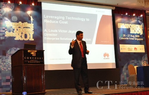 本次CCAS Symposium 2009的主題為“Translating talent into ROI”,著重探討在目前金融危機(jī)的陰霾下,如何通過精細(xì)化的運(yùn)營管理,將人力資源或人才轉(zhuǎn)換成實(shí)實(shí)在在的投資回報(bào)率。華為資深專家Louis”做了”Leveraging