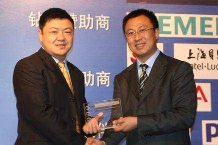 圖: F&S全球主席David Frigstad親自授予華為軟件“2009數(shù)字城市解決方案創(chuàng)新獎(jiǎng)”。