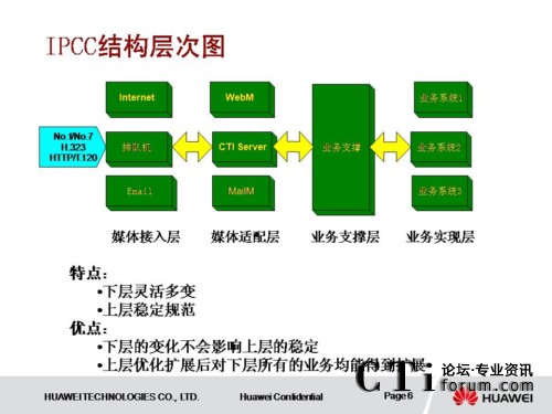 IPCC系統(tǒng)采用了獨立于各種接入媒體的設計結構,具有良好的開放性和可擴展性。系統(tǒng)采用業(yè)務和交換分離的設計思想,業(yè)務層及業(yè)務支撐層從傳統(tǒng)的網(wǎng)絡中分離出來,使業(yè)務實現(xiàn)層也具有良好的開放性和可擴展性。