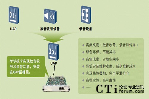 隨著全球氣候的變化,低碳經(jīng)濟已經(jīng)成為關(guān)注焦點。一體化接入平臺UAP2100內(nèi)置了寬窄帶語音交換和排隊功能,在僅2U的高度之內(nèi)實現(xiàn)了寬窄帶中繼接入和錄音、放音等媒體資源處理能力,無需外置媒體服務(wù)器和中繼網(wǎng)關(guān),低能耗元器件的使用和高集成度設(shè)計,有效降低了空間占用和能源消耗,使您在不經(jīng)意間就實現(xiàn)了綠色聯(lián)絡(luò)中心平臺,降低您可觀的運行成本。
