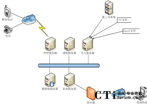導入服務(wù)器:負責導入每個外撥業(yè)務(wù)所屬的具體外撥任務(wù)號碼,可通過多種方式導入,例如從第三方系統(tǒng)導入、其它數(shù)據(jù)庫、TXT文件或Excel文件等;