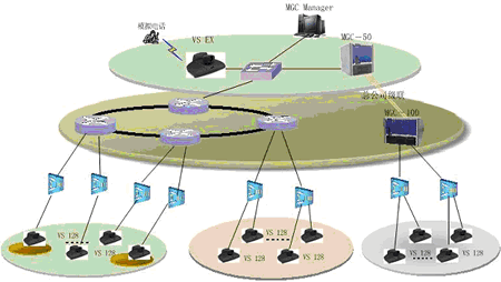 一般來(lái)說(shuō),在省公司同時(shí)參與會(huì)議的人數(shù)較多,考慮配置比較大的系統(tǒng),由某一領(lǐng)導(dǎo)召集一些相關(guān)成員在此開(kāi)會(huì);在地市公司同時(shí)參與會(huì)議的人數(shù)較少,只是一些主要領(lǐng)導(dǎo)參加會(huì)議,考慮配置比較小的系統(tǒng);同時(shí),為了實(shí)現(xiàn)終端之間管理和傳送音頻、視頻和數(shù)據(jù),需要MCU來(lái)協(xié)調(diào)終端的工作,并與上級(jí)MCU相級(jí)聯(lián),擴(kuò)大會(huì)議的規(guī)模。另外,可以增加一套T.120服務(wù)器,該系統(tǒng)是利用多媒體技術(shù)幫助使用者對(duì)工作中的各種信息進(jìn)行處理,如共享數(shù)據(jù)、共享應(yīng)用程序、實(shí)現(xiàn)文件的雙向傳輸?shù)龋瑥亩鴺?gòu)造出一個(gè)多人共享的工作空間。以及增加一套VOD系統(tǒng),它集視頻采集、點(diǎn)播、廣播于一體,這樣就可以將視頻會(huì)議的內(nèi)容實(shí)時(shí)的錄制到本地,也可將一些培訓(xùn)資料放在視頻點(diǎn)播里,便于對(duì)貴公司員工進(jìn)行培訓(xùn),還能通過(guò)視頻廣播的功能,讓使用PC機(jī)的人員不在會(huì)議室,便可以通過(guò)瀏覽器實(shí)時(shí)的看到和聽(tīng)到正在召開(kāi)的會(huì)議。
