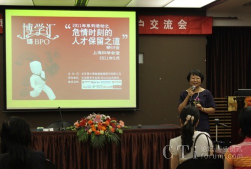 CTI論壇(ctiforum)6月3日消息(記者 張潔):2011年5月31日下午,上?茖W會堂思南樓九層賓客盈門,勝友如云。易才博普奧“博學匯”系列活動之四“危情時刻的人才保留之道”研討會在輕松愉悅的氛圍中拉開帷幕。本屆“博學匯”以“人才保留”為主題,邀請了業(yè)內(nèi)權(quán)威專家及其資深從業(yè)者就人才保留這一話題展開一系列探討。會上分別從學術(shù)觀點、呼叫中心、人力資源、服務外包等諸多領(lǐng)域來探討人才保留的種種新途徑、新方法。