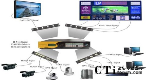 Kensence H-Mix系列產(chǎn)品專門(mén)為解決在視頻工程中遇到的諸多問(wèn)題而設(shè)計(jì),將數(shù)字視頻信號(hào)、模擬視頻信號(hào)、高清視頻信號(hào)和標(biāo)清視頻信號(hào)混為一體處理成高清720p@60Hz或1080p@60Hz信號(hào)的HDMI的高清數(shù)字信號(hào)通過(guò)網(wǎng)絡(luò)傳輸?shù)囊豢疃嗝襟w混合矩陣。Kensence H-Mix采用Silicon Image HDMI v1.3芯片,支持HDMI\DVI\3GSDI\HDSDI\SDI\VGA\YPbPr\CVBS信號(hào)的輸入和HDMI\DVI\CAT-5\光纖信號(hào)的輸出,可將VESA\CEA\HDTV各種不同分辨率的信號(hào)轉(zhuǎn)換為HDTV的高清視頻分辨率,并且可以通過(guò)普通五類雙絞線或多模光線進(jìn)行高清視頻的傳輸。Kensence H-Mix可以通過(guò)網(wǎng)絡(luò)、RS232、IR、軟件、前面板對(duì)系統(tǒng)進(jìn)行控制管理,采用插卡式設(shè)計(jì)可以任意進(jìn)行系統(tǒng)組合,方便靈活。模塊化雙電源冗余熱備份功能可以實(shí)現(xiàn)7日24小時(shí)連續(xù)開(kāi)機(jī),保證系統(tǒng)安全可靠工作。