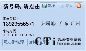 來電彈屏自動(dòng)顯示對方號(hào)碼歸屬地?cái)?shù)據(jù)信息;