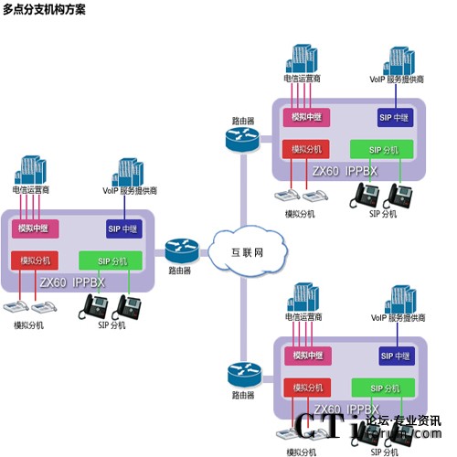 ZX60不僅具有本地電話分機(jī)接口,還運行IP電話機(jī)遠(yuǎn)程注冊,無論你若干個辦公室分布在何處,都可以打造成你內(nèi)部免費通話的集團(tuán)電話通信系統(tǒng),節(jié)約你的內(nèi)部通信成本,提高辦公效率。
