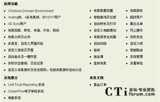 大新銀行Information Technology Division 項(xiàng)目經(jīng)理Benjamin Chu指出:“OceanFax Fax Server具有全面而強(qiáng)大的功能,支持電子傳真及自動(dòng)傳真,系統(tǒng)易使用和管理;通過(guò)與Unit Trust Reporting系統(tǒng)及OceanFlow電子審批系統(tǒng)的整合,理順大新銀行投資基金業(yè)務(wù),實(shí)現(xiàn)工作的自動(dòng)流程。該整合能提高效率、降低成本、保證信息安全及快速帶來(lái)投資回報(bào)。”