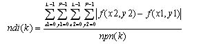 其中f(x1, y1),f(x2, y2)為圖中距離大于k、小于k+1的任兩點(diǎn)的值,即x1、y1、x2、及y2要符合下列式(3.2)的判斷式。又npn(k)代表的是,圖中所有符合上列條件的點(diǎn)對(duì)數(shù)。
