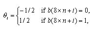 在將g(n)拆成binary形式之后,方法[8]再對(duì)每一個(gè)位bi的值作改變,其中0≦i≦7。而其對(duì)每一個(gè)位bi值作改變的方法如式(1.2)所示,而b’i代表的為bi被改變之后的值。