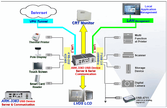 ARK-3383從設(shè)計初就定義為企業(yè)類USB設(shè)備的接入”門戶”, ARK-3383可使使用者立即連接各種各樣的USB外圍設(shè)備或方便共有的用戶存取,數(shù)據(jù)傳輸速度可達480