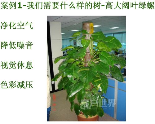 我現(xiàn)在講的是一些案例,這些案例發(fā)現(xiàn)當(dāng)我們用顯微鏡的角度去看,我們今天已經(jīng)可以做到,立刻就可以做到的事情是在話房安放很多棵樹,推薦綠蘿,這是我看到的最優(yōu)秀的一棵綠蘿,為什么說它很優(yōu)秀呢?因為它是吊頂?shù)模斕炝⒌氐囊豢脴,樹的好處四大功能分別是凈化空氣、降低噪音、視覺休息,用色彩減低自己的壓力。今天咱們的會議室里面只有這么一個小的樹,我相信大家一定會疲勞是很正常的,因為我想過在家里面放這些的樹,我和我老公商量我們要放這棵樹,開始是被他批判的,雖然他現(xiàn)在還沒有完全接受,我還是會說服他去做這件事情,大家可以試一下,你的話房里面平均10個話務(wù)員放一棵樹,你會覺得他們感覺一下就會出來。