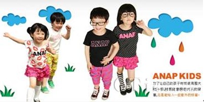 除了衣服質(zhì)感舒適,ANAP KIDS以款式流行、設(shè)計(jì)CUTE的市場定位也贏得 不少青睞者的追捧。更有小物件、配飾等多類商品,滿足了喜歡時(shí)尚、裝扮的母親們想讓自己孩子穿得和其他人與眾不同衣服的需求。繼承了ANAP傳統(tǒng)的ANAP KIDS是一個(gè)非!氨挤拧、“充滿活力”的品牌,致力于協(xié)助父母給予最可愛的他(她)最安全、最舒適的呵護(hù),將潮流、關(guān)愛、成長的生活觀念傳遞到每個(gè)家庭,讓所有3-6歲兒童共享同一份快樂。