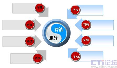 首先看一下服務(wù)營(yíng)銷的理念,有必要來溫故一下。在傳統(tǒng)的制造業(yè)中,即在工業(yè)經(jīng)濟(jì)的模式下,服務(wù)和營(yíng)銷是截然分割的,一般大家都認(rèn)為,營(yíng)銷在前,服務(wù)在后。服務(wù)有幾大特性,比如在購(gòu)買了產(chǎn)品后才會(huì)有相關(guān)的服務(wù),服務(wù)是無形的商品,企業(yè)建立的是售后服務(wù)體系。另外,大家都認(rèn)為服務(wù)沒有辦法進(jìn)行標(biāo)準(zhǔn)化,從這個(gè)角度說,大家一看到服務(wù),就會(huì)聯(lián)想:客服、成本、務(wù)虛、被動(dòng)等詞匯。服務(wù)體現(xiàn)的是一種理念,所以大家認(rèn)為比較虛。說到服務(wù)是被動(dòng)的,實(shí)際是與營(yíng)銷相比,營(yíng)銷是比較主動(dòng)的。拿呼叫中心來說,客服人員坐在座位上,等待著客戶打來電話,而不能對(duì)電話進(jìn)行預(yù)測(cè),下一個(gè)小時(shí)會(huì)有多少呼入電話產(chǎn)生、投訴的內(nèi)容會(huì)有哪些、咨詢業(yè)務(wù)量會(huì)有多大,這些誰(shuí)也不能進(jìn)行準(zhǔn)確預(yù)測(cè),所以說服務(wù)相對(duì)比較的被動(dòng)。再說營(yíng)銷,大家談營(yíng)銷時(shí),能想到的詞匯有:產(chǎn)品、利潤(rùn)、務(wù)實(shí)、主動(dòng)。因?yàn)闋I(yíng)銷是與產(chǎn)品掛鉤,營(yíng)銷又可以賺取利潤(rùn)。另外,之所以說營(yíng)銷是務(wù)實(shí)的,因?yàn)闋I(yíng)銷是有指標(biāo)的,每個(gè)月要進(jìn)行考核。同樣如果從呼叫中心的角度談電銷,它是一種主動(dòng)式的外呼。