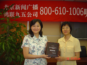 鑒于鴻聯(lián)九五信息處理中信與北京廣播電臺新聞臺的合作中所提供的高水平的服務(wù),近期,新聞臺李臺長在聽眾見面會上親自將最佳合作獎(jiǎng)交到鴻聯(lián)九五總經(jīng)理趙薇的手中,并熱切希望開拓今后合作,努力走出一條呼叫中心和媒體合作的新路。