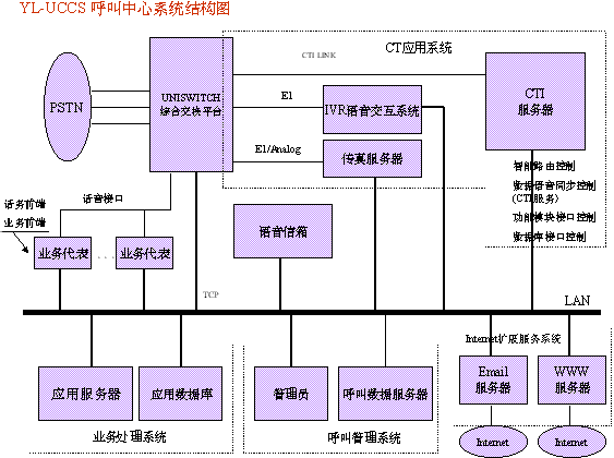 YL-UCCS呼叫中心充分利用了現(xiàn)有電信及網(wǎng)絡資源,提供多種智能服務的綜合呼叫中心框架,保證開放、統(tǒng)一的接口,以充分適應擴展各項新業(yè)務的需求。