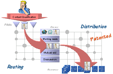 CCD智能呼叫分配器對(duì)經(jīng)過呼叫特性鑒別并進(jìn)入引導(dǎo)系統(tǒng)的呼叫,通過路由選擇矩陣進(jìn)入不同的等待隊(duì)列,并由第二個(gè)雙向分配矩陣進(jìn)行資源選擇或呼叫選擇。CCD先進(jìn)的雙矩陣分配方式,通過其獨(dú)特的技巧和費(fèi)用最低的路由算法來管理呼叫業(yè)務(wù)和資源,其性能超過當(dāng)前工業(yè)標(biāo)準(zhǔn)。這種呼叫分配算法的顯著特點(diǎn)之一是恰到好處地分離路由選擇、資源分配以及選擇呼叫三個(gè)過程,使其既相對(duì)獨(dú)立,又靈活選擇。而傳統(tǒng)的“矢量分配”法的主要缺點(diǎn)是僅從呼叫的觀點(diǎn)描述處理,缺乏對(duì)正空閑的資源該做些什么加以控制。