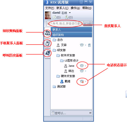 OmniRTX插件實現(xiàn)了在RTX界面上,直接對企業(yè)內(nèi)部電話終端進(jìn)行基本呼叫業(yè)務(wù)和電話增值業(yè)務(wù)的控制、設(shè)置和管理,更加方便的提供了企業(yè)內(nèi)部員工之間的交流,進(jìn)一步改善企業(yè)與客戶之間的溝通渠道,所有的溝通和交流不再受時間、空間的限制,更高質(zhì)量的解決了企業(yè)在語音、文字、圖片以及視頻等多方面的效率問題!