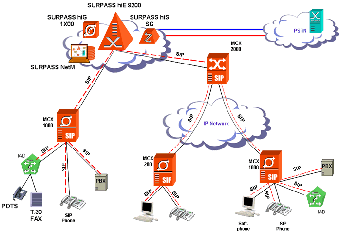 - MCX2000——集中路由控制服務器,提供IP CENTREX功能,支持多臺MCX200或MCX1000的互通,集中控制跨MCX200或MCX1000的呼叫。典型應用場景是與MCX200/1000混合組網(wǎng),構(gòu)成企業(yè)廣域IP語音網(wǎng)絡或NGN大規(guī)?蛻艚尤刖W(wǎng)絡。