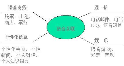 在中國(guó),電話有著最廣泛的用戶群;追求方便時(shí)尚,希望使用互聯(lián)網(wǎng)信息、郵件而不懂或不熟悉鍵盤操作的用戶占4/5;語音互聯(lián)網(wǎng)是電話網(wǎng)與互聯(lián)網(wǎng)的完美結(jié)合,通過語音互聯(lián),普通電話用戶用自然語言對(duì)話的方式即可獲取互聯(lián)網(wǎng)的主要服務(wù),滿足用戶任何時(shí)間、任何地點(diǎn)、任何設(shè)備獲取信息的需求。在美國(guó)、日本,語音互聯(lián)已成為簡(jiǎn)易終端接入互聯(lián)網(wǎng)的主要方式之一。