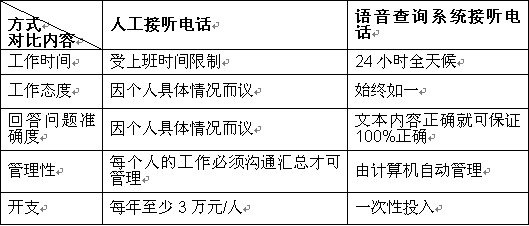 將以往的單位的人工熱線電話轉(zhuǎn)換為計算機24小時自動熱線。有效解決服務(wù)態(tài)度、服務(wù)質(zhì)量等敏感問題。咨詢來電只須象以往撥打熱線電話,計算機中的語音卡就會自動接通,完成95%以上的人工服務(wù)任務(wù),用戶就可以通過電話這種最簡單、最易用的方式快速獲取信息。
