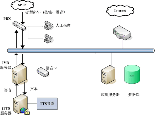 jTTS在12320中的應(yīng)用主要表現(xiàn)在查詢結(jié)果的語(yǔ)音返回和服務(wù)信息的發(fā)布上。只要將捷通TTS服務(wù)器集成到現(xiàn)有的IVR系統(tǒng)中,并且在IVR服務(wù)端設(shè)置好預(yù)讀出的文本即可。眾所周知,“12320”公益服務(wù)熱線需要提供海量關(guān)于我國(guó)公共衛(wèi)生相關(guān)法律法規(guī)、各種重大疾病的預(yù)防保健知識(shí)的宣傳和咨詢服務(wù),如果采用傳統(tǒng)人工座席或請(qǐng)專(zhuān)業(yè)播音人員錄音,費(fèi)時(shí)費(fèi)力,且投入較大。用語(yǔ)音合成技術(shù)(TTS)來(lái)解決,用戶提交查詢請(qǐng)求,IVR服務(wù)器收到請(qǐng)求后會(huì)向其他應(yīng)用服務(wù)器提交,當(dāng)IVR得到查詢結(jié)果后,將文本形式的查詢結(jié)果交給jTTS服務(wù)器,jTTS服務(wù)器返回查詢結(jié)果的語(yǔ)音形式,最終語(yǔ)音在坐席上播放,用戶就可以聽(tīng)到所要查詢的信息(如圖)。這樣市民可以24小時(shí)撥打熱線,查詢各方面的內(nèi)容,不受時(shí)間限制,既節(jié)約政府開(kāi)支,為民辦實(shí)事,而且在最大程度上提高了辦事效率,樹(shù)立了良好的政府形象。