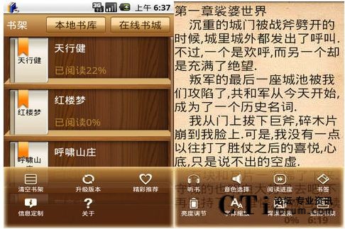 只要將捷通華聲出品的聽書軟件安裝在Android1.6以上系統(tǒng)的智能手機(jī)中,即可隨心暢讀,捷通聽書是捷通華聲人機(jī)交互(HCI)技術(shù)的創(chuàng)新之作,它運(yùn)用嵌入式語音合成技術(shù),無需人工進(jìn)行預(yù)置錄音,無論什么文體,都可進(jìn)行順暢的海量閱讀,這樣的海量閱讀并不會給手機(jī)的存儲空間帶來負(fù)擔(dān),現(xiàn)在就可在官網(wǎng)中http://www.hcicloud.com/xiazai.asp?id=2&classtitle=手機(jī)伴侶&clid=3 下載捷通TTS組件,只要電子書的格式為純文本文件TXT格式,便可順利進(jìn)行語音朗讀。您可以選擇男聲、女聲和寶寶聲,音質(zhì)清晰可媲美真人發(fā)聲,聽書已不再成為難事。捷通聽書軟件外觀整體設(shè)計古樸典雅,仿佛真能聞到書香的氣息,這樣的視聽氛圍會立刻帶你進(jìn)入到聽書的境界中。獨(dú)特的翻頁模式更具人性化的設(shè)計,讓人機(jī)交互更像真正意義上的翻頁讀書,無論是聽書,還是看書,都給人帶來美好的體驗(yàn)。另外,捷通華聲的語音合成技術(shù)還可提供多種音色的備選方案,可根據(jù)用戶的需求進(jìn)行選用,同時支持英語、日語、俄語、德語、意大利語等多個語種的語音合成技術(shù),為用戶提供真正多方位的服務(wù)。近日,捷通聽書還在BTV《在線E起來》欄目中精彩亮相,節(jié)目中的多項(xiàng)測評使這款軟件表現(xiàn)不俗,捷通聽書軟件再次成為智能手機(jī)軟件應(yīng)用中的新亮點(diǎn)。