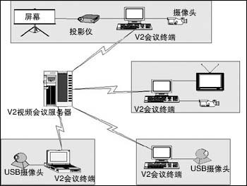 V2 Conference 視頻會(huì)議系統(tǒng)是基于MPEG-4標(biāo)準(zhǔn)的多媒體壓縮技術(shù),利用IP網(wǎng)絡(luò)開展視頻會(huì)議的軟件系統(tǒng)。在從56Kbps撥號(hào)到寬帶的網(wǎng)絡(luò)環(huán)境下,用戶利用V2 Conference視頻會(huì)議平臺(tái),通過(guò)配備普通的PC機(jī)、標(biāo)準(zhǔn)的音視頻采集和輸出設(shè)備,就可以實(shí)現(xiàn)基于Intranet/Internet的虛擬會(huì)議。系統(tǒng)不僅可以提供流暢的語(yǔ)音,而且提供清晰流暢的視頻圖像。與傳統(tǒng)的基于硬件的解決方案相比,V2 Conference 是純軟件解決方案。用戶無(wú)需投入高昂的成本,就能夠?qū)崿F(xiàn)高質(zhì)量、高可靠性的音視頻通訊、協(xié)同工作、文檔共享、遠(yuǎn)程會(huì)議管理等多種會(huì)議功能,有效地節(jié)約時(shí)間和經(jīng)費(fèi),提高企業(yè)的工作效率。